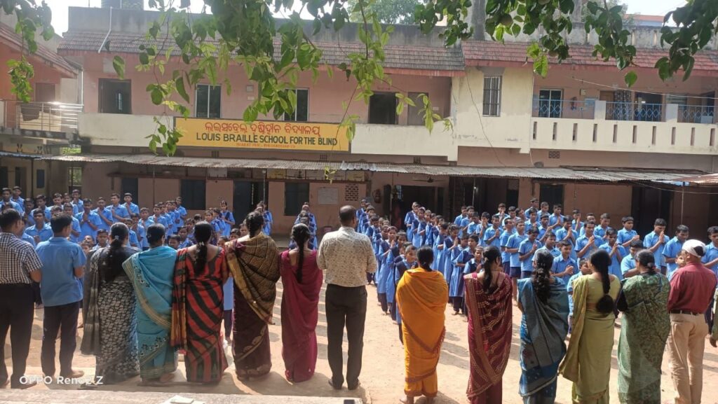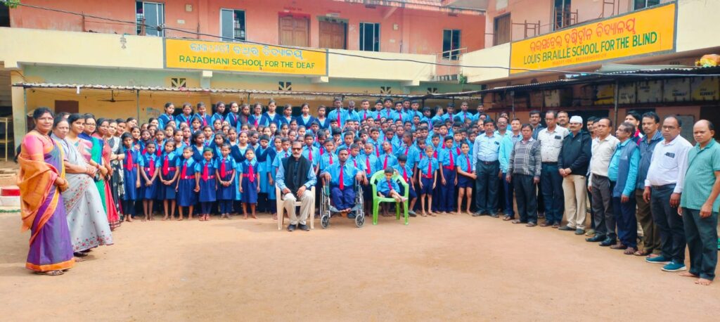 Glimpses of Our Activities Teacher engaged in Class Room Divyang Children in Prayer Assembly Observing Gandhi Jayanti Students in House Uniform – The Special Family –Students and Staff of Special Schools with Chief Functionary Students of Rajadhani School for the Deaf Students of Louis Braille School for the Blind